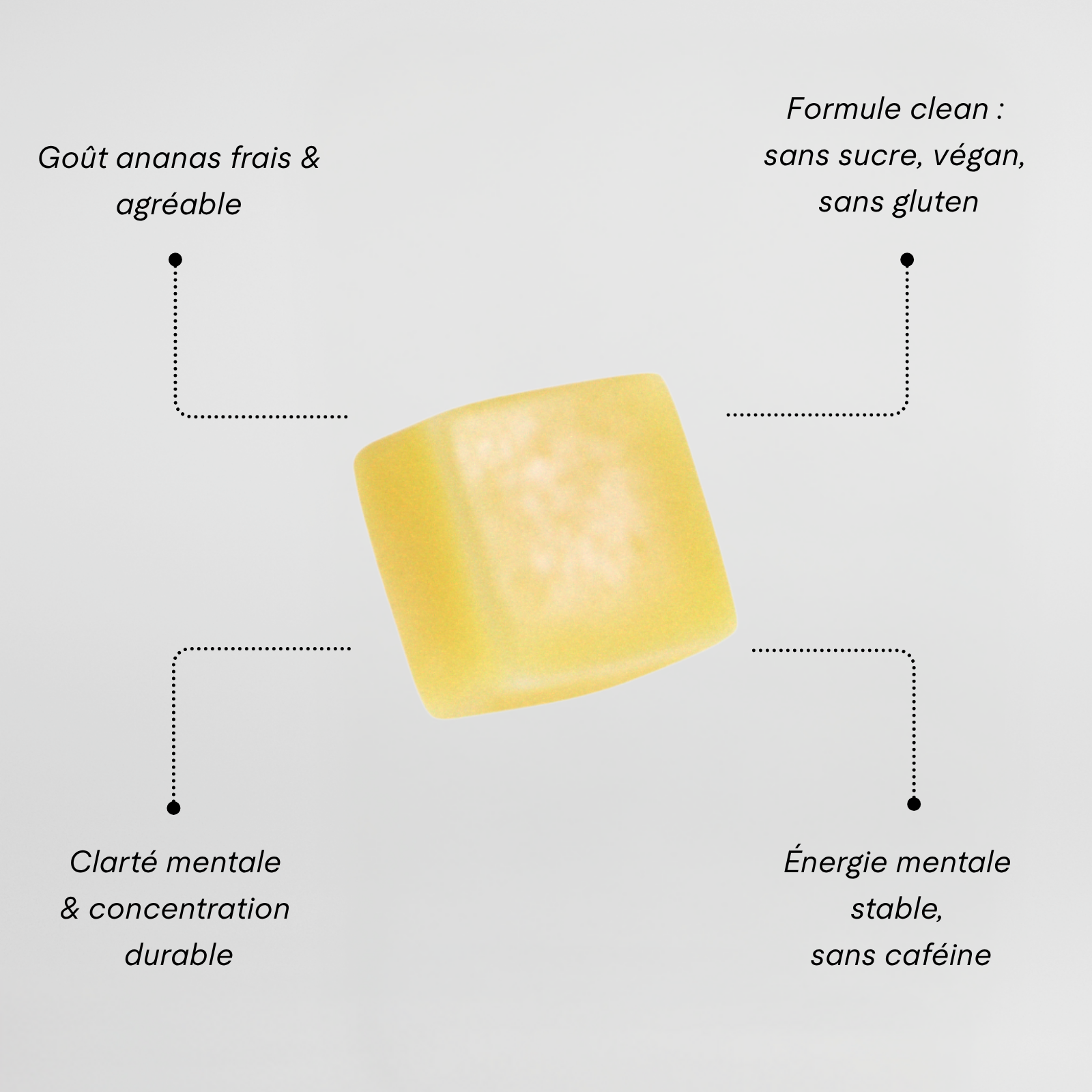 🍍 Goût Ananas – Un délicieux gummie à l'ananas pour booster votre esprit, sans effort.